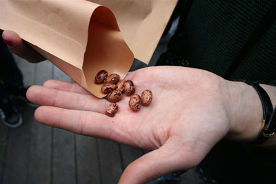 Een aantal tuinders onderbreekt hun gewroet en stappen op de fiets. Kijken naar andere tuinen. De eerste halte is stadsboerderij Rood Noot. Al bekend van theater en muziekvoorstellingen, gecombineerd met maaltijden, die ook bestanddelen uit eigen tuin omvatten. Theaterman Peter Kolpa laat drie bakken in de voortuin zien, waarin een kunstenaar planten en kruiden heeft gezet, die bij voorgerecht, hoofd- en nagerecht horen. Bij de put aan de zijkant van de voorhuis heeft hij langs de sloot gewassen gezet, die stevig wortelen, zodat de aarde wordt vastgehouden. In een kasje teelt Peter zomerpostelein, sugarsnaps (peultjes), wilde rucola – die fantastisch smaakt – rode biet, sla en kievitsstokbonen, die al omhoog beginnen te krullen. Dikwijls maken planten deel uit van kunstprojecten op Rood Noot. Peter en De Halte wisselen zaden en planten uit.