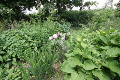 Niet zo heel veel verder ligt biologische burentuin De Wilgenhof. Langs het spoor in de wijk Nieuw-Engeland. Een tref: er is open dag. Een inspirerende tuin met ruim liggende tuintjes voor de leden, een mooi gemeenschappelijk deel met bijna dichtgegroeide vijvers vol planten, bankjes, een vuurplaats en een prettige schuur met keukentje. ‘In 12 jaar opgebouwd’, zo vertelt Ingeborg: ‘Leden verplichten zich tot twee samenwerkdagen per maand voor het gemeenschappelijke deel van de tuin. Samen delen, samen eten. We onderhouden ook paden en de speciale compostwal. Daar huizen insecten, die vogels, egels, hagedissen, ratten en muizen aantrekken. We cultiveren niet alles!’ Het is heerlijk om een pannenkoek te eten, belegd met rode melde (blaadjes) en vlierbloesem! Ook slecht nieuws: de tuin verdwijnt voor de helft onder de spoorverdubbeling tussen Leidsche Rijn en Utrecht Centraal.